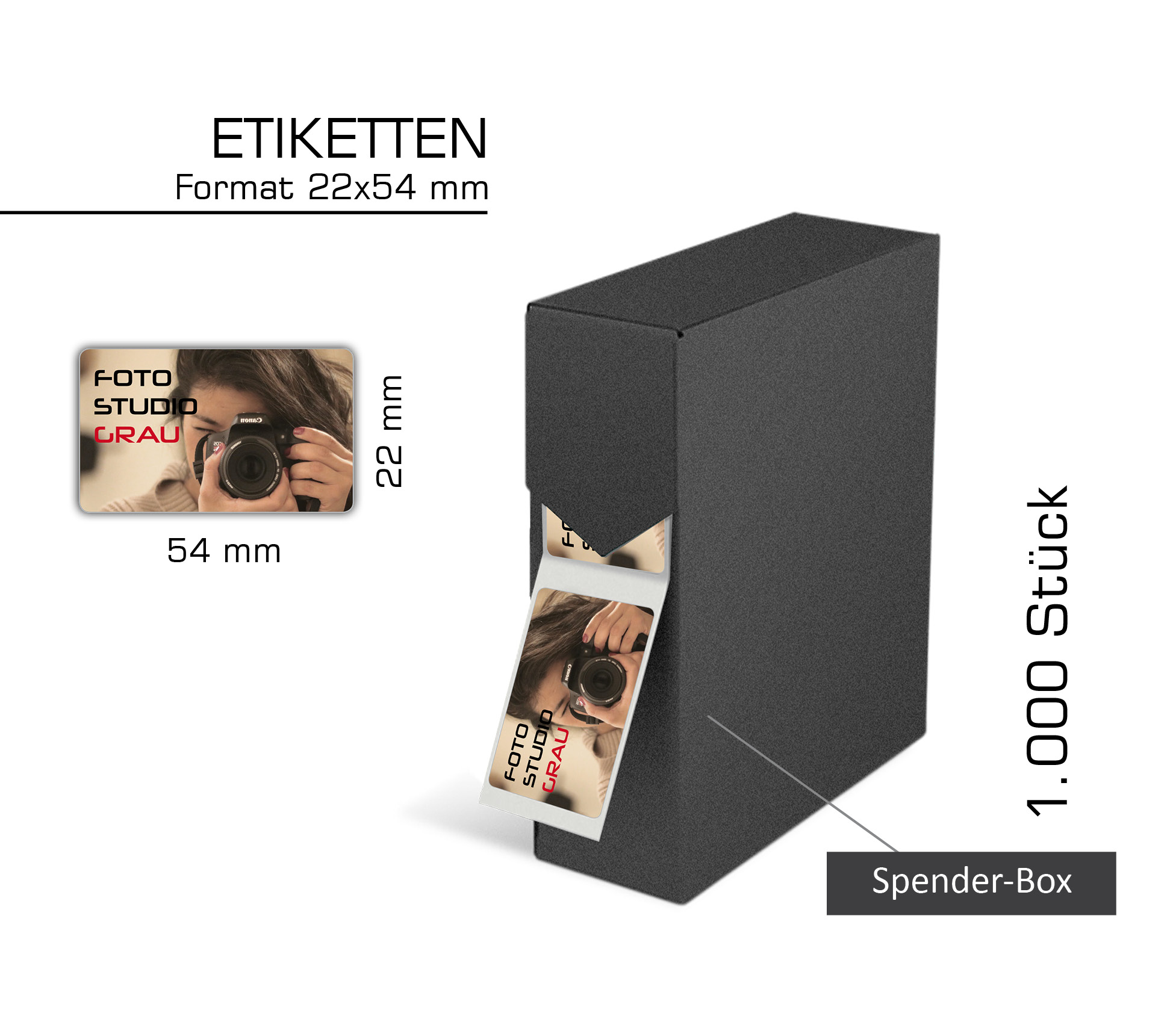 Aufkleber farbig bedruckt auf Rolle, [22 x 54 mm], 1.000 Stück