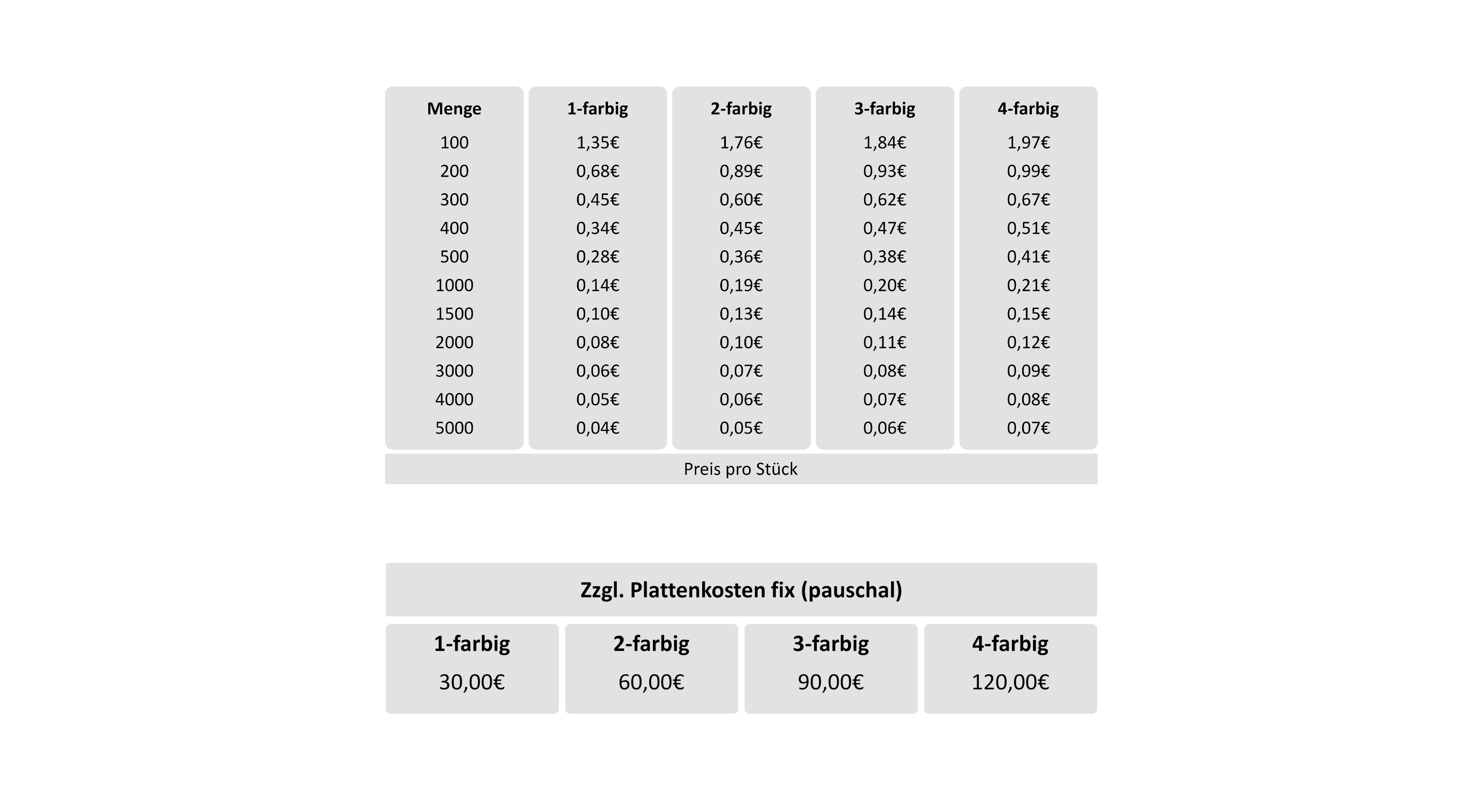 Nutzen Sie diesen Vorteil und lassen Sie Ihre Artikel fachmännisch bedrucken. Zur Gestaltung Ihrer Produkte senden wir Ihnen gerne Standskizzen mit allen maßen zu. Sehr gerne helfen wir Ihnen auch bei der Gestaltung Ihrer Produkte.