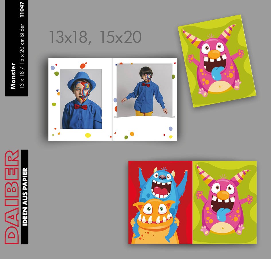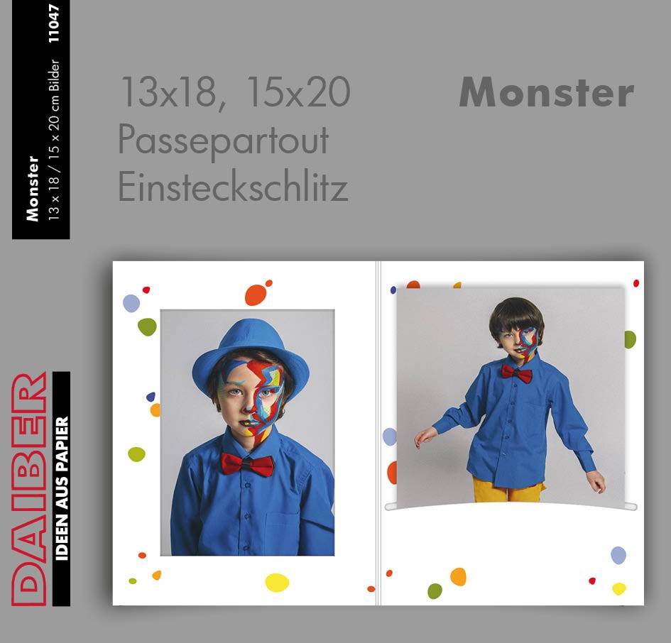 Produktinformationen "Kindermappe "MONSTER", Passepartout [13x18 cm], Einsteckschlitz [15x20 cm], 50 Stück"