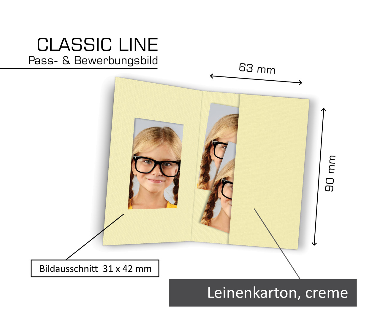 Pass- und Bewerbungsbildmappe CLASSIC-LINE, 100 Stück, Leinenkarton creme
